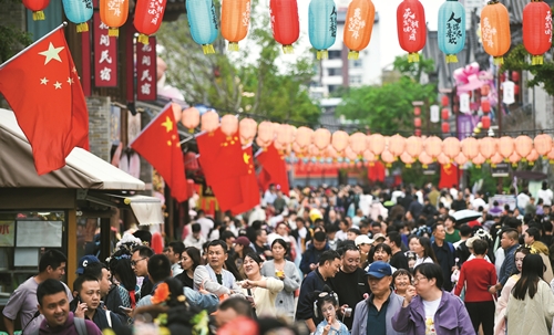 游客在河南省洛阳市老城区休闲游玩,感受千年古都韵味。(黄政伟/人民图片)