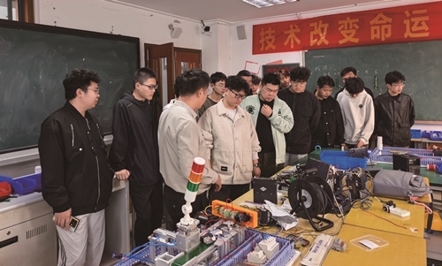 吴中技师学院构建了“理论学习+项目实习+深化提升”的螺旋式培养模式。“我们开设电工、钳工、PLC编程、机械设计等核心课程,面向在校大学生、应届毕业生及有从业意愿的初中毕业生提供零基础技能培训。”陆鼎介绍,为破解传统教学中理论与实践脱节的痛点,学院建立“培训+实操”快速响应机制,将企业真实项目引入教学,使学生在接线、绘图、编程等实际场景中锤炼技能,有效提升了学习兴趣和动手能力。“学生看着自己第一次调试的设备成功运转,那种成就感和专业自信是纯理论教学无法比拟的。”