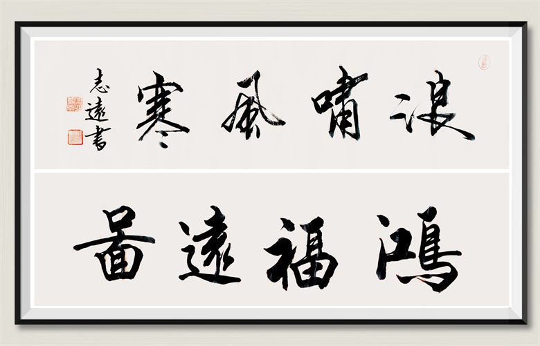 潘志远的点画似钩,又似剑,刚如屈铁,劲如错刀,苍如老松,但是,筋骨劲健却不失典雅,力度倔强却不失灵动,变幻奇崛却不失疏朗,而娴雅、萧散、雄放也在聚合之间,纵逸离奇,字里行间彰显着书法之法,却写着书法之艺,那书法之法是百炼成钢所形成的肌肉记忆,那书法之艺则是熔铸百家之后不经意之间的流露。