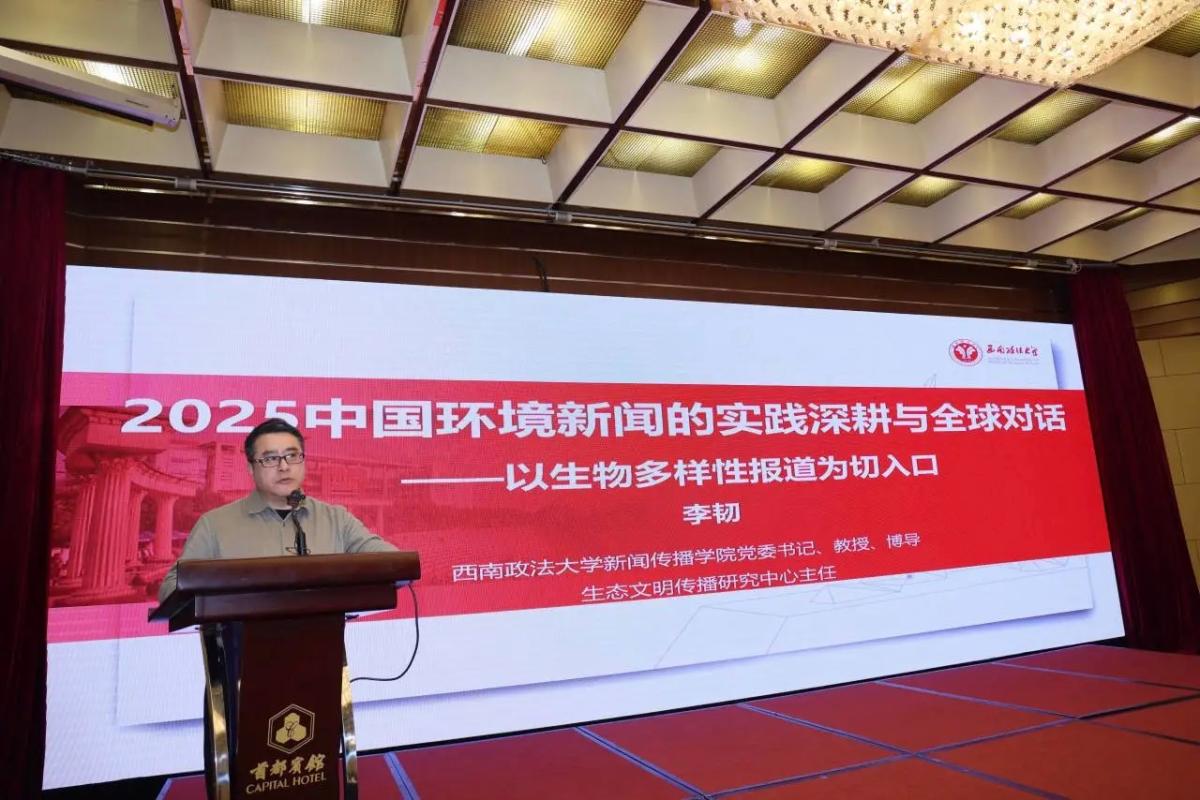 西南政法大学教授李韧,围绕“2025年中国环境新闻的实践深耕与全球对话——以生物多样性报道为切入口”作主旨报告。他表示,生物多样性报道有三个鲜明特点:在地化叙事与成效可视化深度融合、多元主体协同的叙事框架日益成熟、全球视野下的本土行动彰显大国担当,既扎根本土,又始终保持与全球议程的对话。