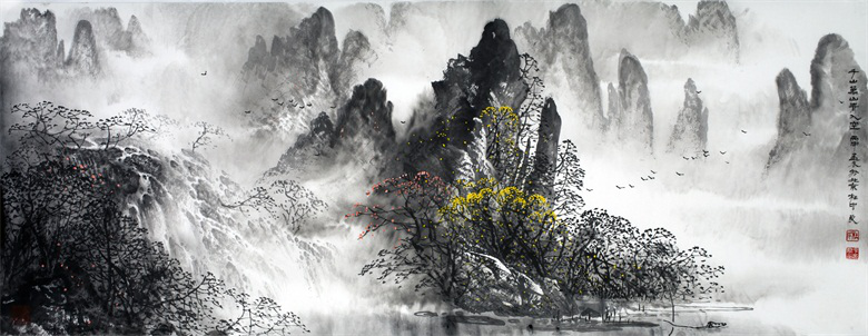 由此看来,随着画家对自然山川精神本质的重新认识和发现,使他的山水画的内涵与外延在不断扩大。他将在全方位多层次的探索中给中国山水画注入新机,并以卓有成效的实践,给古老的中国画艺术增添新的光彩。作为艺术家来说,杜中良正值创作的旺盛期,他不会满足于已取得的艺术成就,他定会在执著的探索中渐臻大化之境。