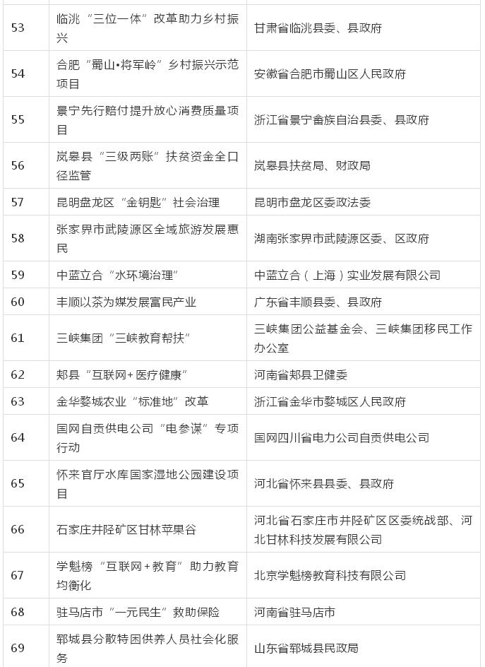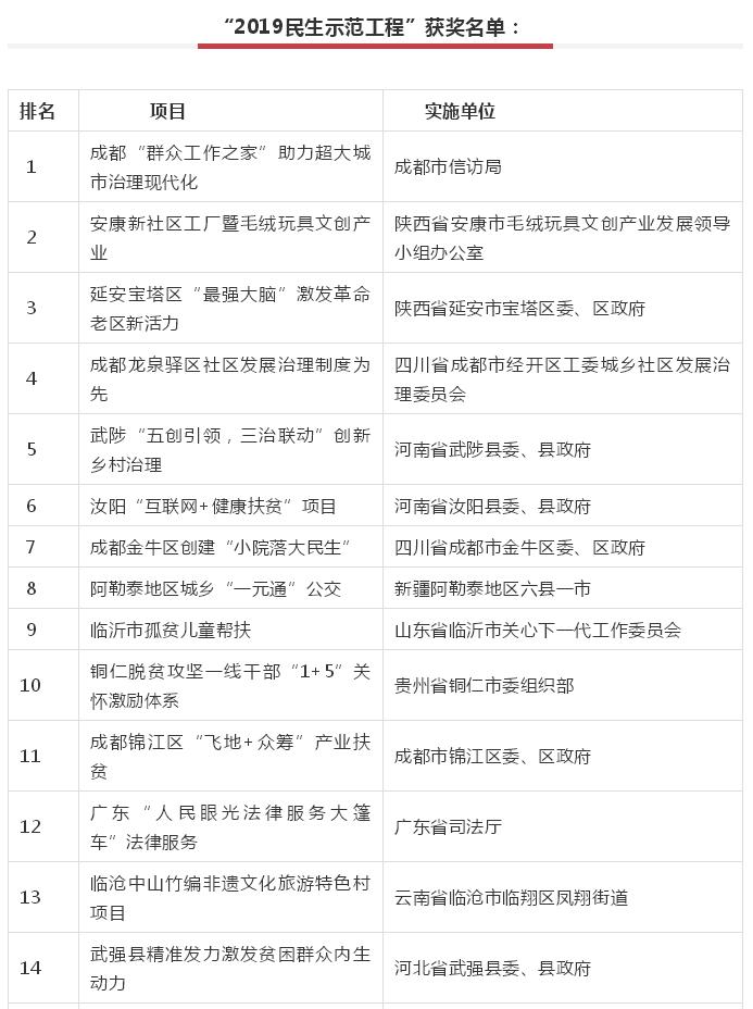 “2019年民生示范工程”全部名单如下: