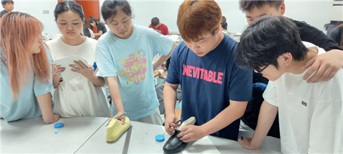 ▲浙工贸鞋类专业学生进行结构设计实训研讨。