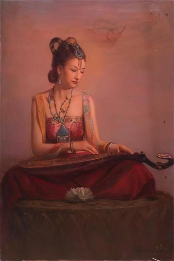 朱俊河绘画作品《梦飞天系列——神女妓乐》