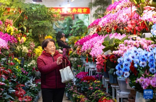 1月24日,在甘肃省兰州市城关区芳草园花卉市场,市民选购花卉。