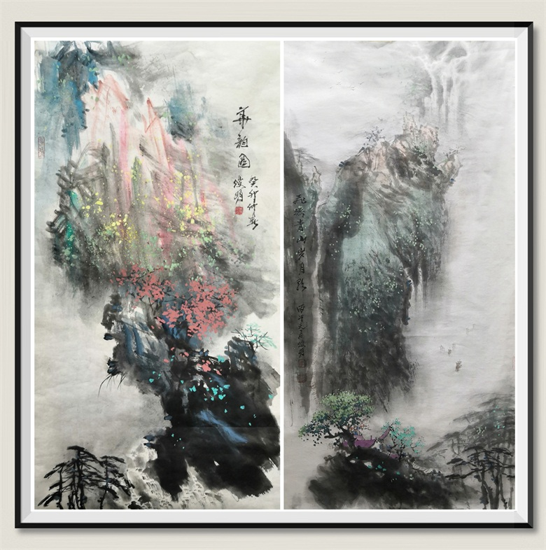 右:《飞瀑青山岁月歌》
