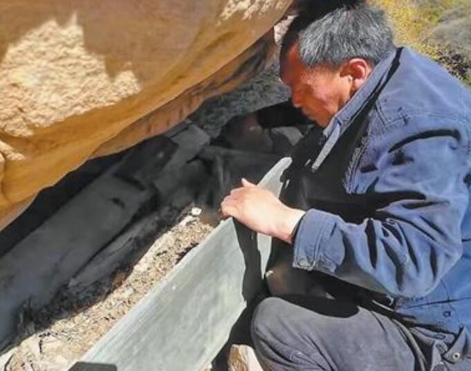 和郭海波一起攀爬了半个多小时,越过一处山间溪流,记者注意到右前方出现了一面红褐色的峭壁。郭海波指着峭壁中间凹进去的一处平台说:“就在那儿了。很多战士的遗骸都在这种石缝中间,当时村民们用门板把牺牲的战士掩放在那里,只是勉强遮蔽一下。”平台上,堆放着已经有些朽坏的木板。郭海波小心地拨开絮状的衣物残片,把里面的骨头一块块捡起来,放进袋子。