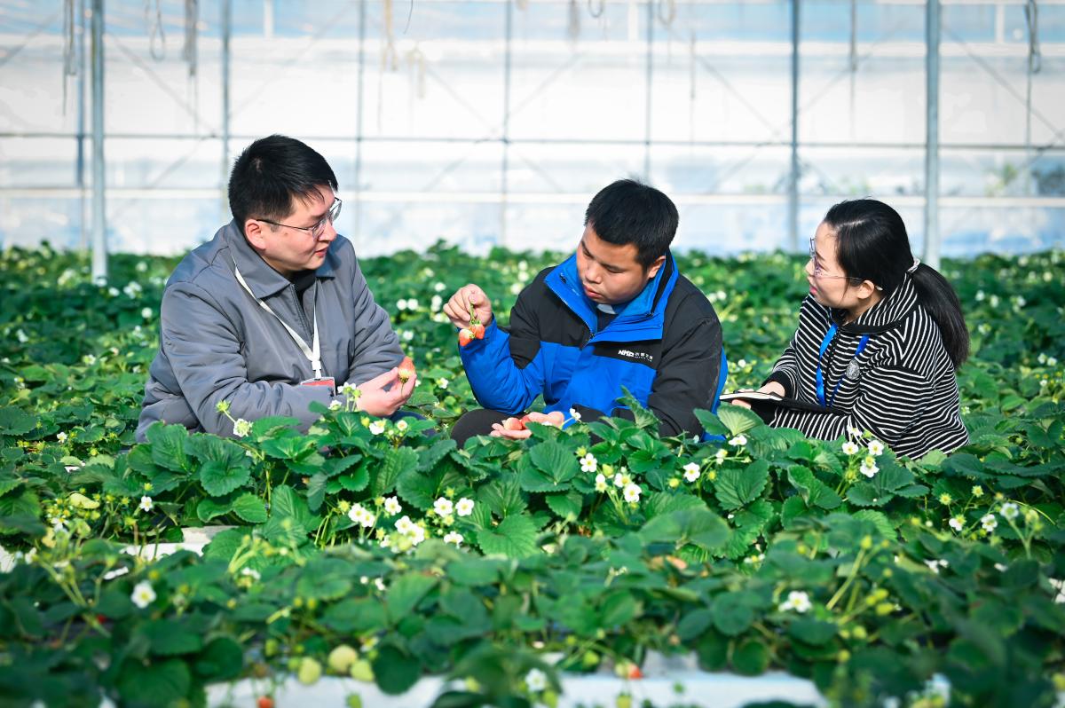 图为浙江省杭州市桐庐县纪检监察干部向当地种植户(中)了解惠民资金使用情况。