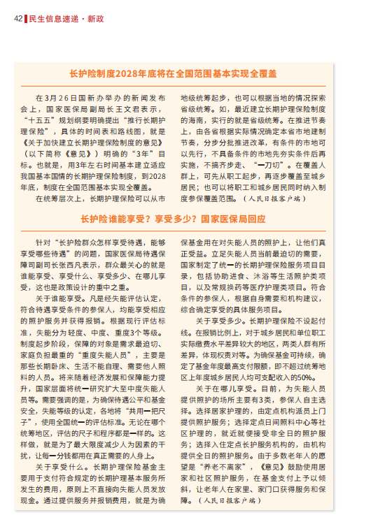 长护险制度2028年底将在全国范围基本实现全覆盖