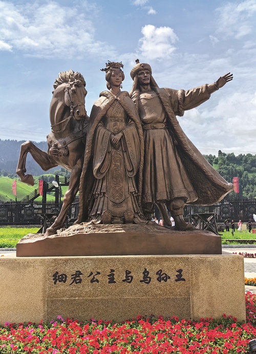 在新疆伊犁哈萨克自治州新源县那拉提景区河谷草原核心区,一座新地标——细君公主广场成为游客争相打卡的“网红点”。