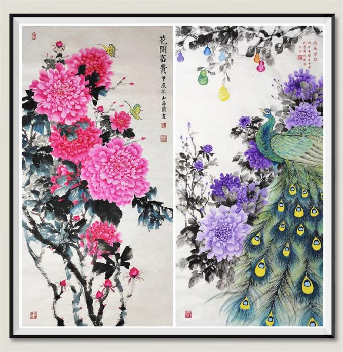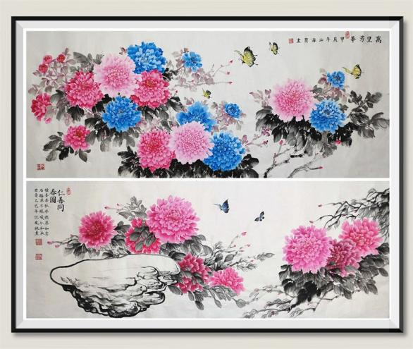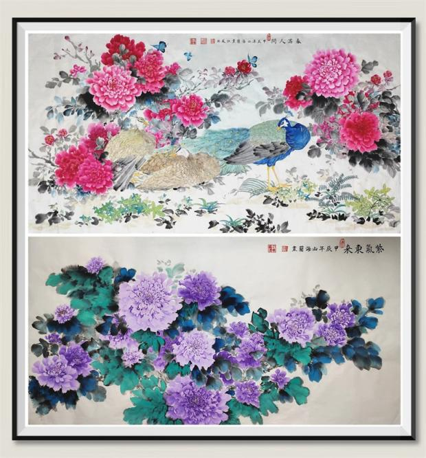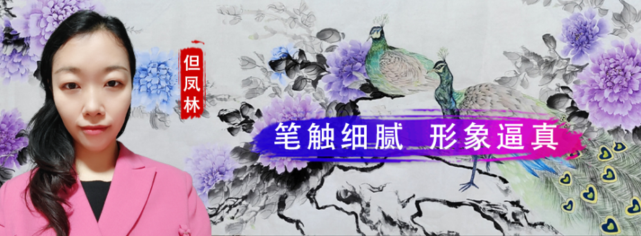 但凤林六岁开始练习书法,2020年开始习画牡丹,得益于父亲但维德的言传身教。她的牡丹图雍容富贵,形象逼真,用笔娴熟、细腻,真到每一朵花的花蕊足以以假乱真。牡丹花的花色在她的手上娴熟于心,跃然纸上的花瓣充满了生机的灵气,各色牡丹的华丽富贵、大气自如。