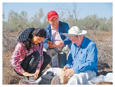 魏江春(右)在新疆采集地衣标本。受访者供图