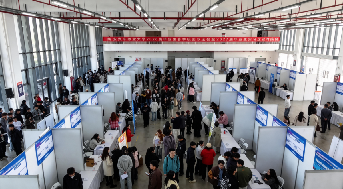 近日,西安汽车职业大学2026届毕业生春季校园双选会暨2027届毕业生实习企业对接会在西安汽车职业大学临潼校区体育馆举行。