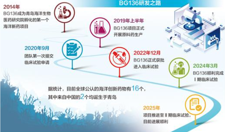 2014年,青岛海洋生物医药研究院正式运行,BG136成为其孵化的第一个海洋新药项目。