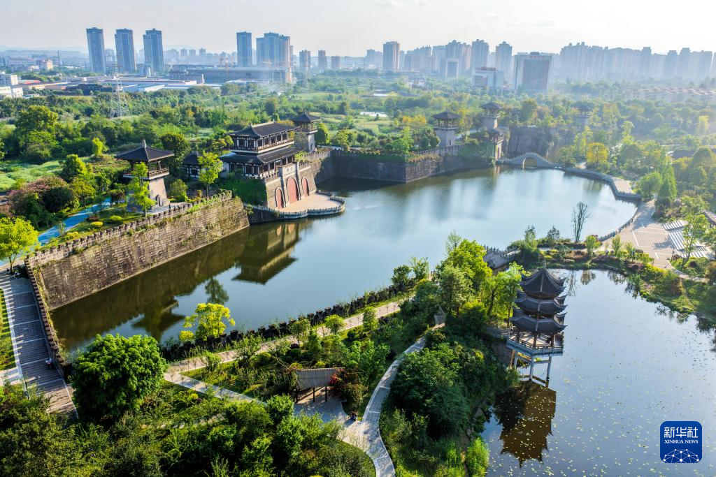 这是4月11日拍摄的玉带河公园景色(无人机照片)。