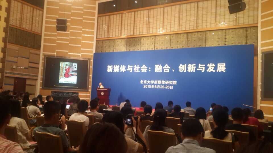 2015年6月25日上午,“新媒体与社会:融合、创新与发展”国际会议在北京大学英杰交流中心阳光大厅开幕。会议由北京大学新媒体研究院主办,来自北京大学、清华大学、中国人民大学、中国传媒大学、复旦大学、波士顿大学、迈阿密大学、爱荷华州立大学等海内外高校学者,新华社新媒体中心、中国日报网络移动事业部、优酷网、果壳网等新媒体平台掌舵人,Social Touch、Target Social、SAP中国研究院等业界专家近50人参加会议。大会历时两日,囊括开幕式及主题发言、六场分论坛及闭幕式主题发言,共计47场主题演讲,涉及新媒体研究、媒介融合、新媒体传播与互联网创新、网络事件及舆情分析、商业应用及前景等各个领域。