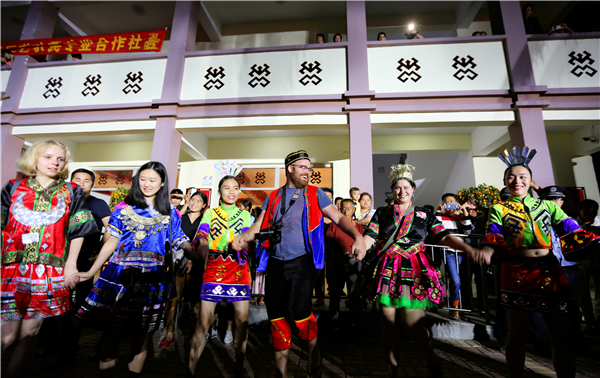中外游客与少数民族群众共同体验欢乐“三月三” 陈思国摄