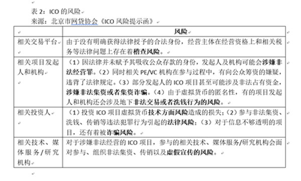 8月28日,北京市网贷协会向各会员、观察员单位发出《ICO风险提示函》,提示ICO项目存在着很大的风险。包括以下几类: