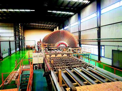 如今,公司成功研发全球首条全自动化、数控化的集装箱底板用定向结构板生产线。