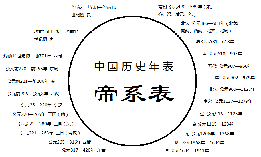 中国历来有“三皇五帝”一说,真正被确证的文化史:从数类文字上看,始于“河洛图书”;从代表人物上看,始于轩辕黄帝(因发明车子而被称谓)。“河洛图书”最早收录于《尚书》之中,它反映了人类对宇宙时空和数字方位的辨识,它是华夏文化的源头,据今已有约5000年。1993年,考古工作在山东发现了“陶文”,距今也有5000年历史。轩辕黄帝是华夏始祖,先后打败了蚩尤和炎帝,使当时的氏族部落融合为一统。据《说文解字》称:“黄帝之史仓颉,见鸟兽蹄选之际,和分理可相别也,初造书契”。这是说,仓颉是黄帝的史官,他创造了文字。黄帝时代距今4700多年,司马迁《史记》中记载的黄帝陵位于河南省灵宝市阳平镇,已数千年受到保护。黄帝时代主要解决了人们衣食住行问题,实现了人类由野蛮向文明的转变。其物质文明方面表现为制衣冠、造舟车、种五谷、教蚕桑;其精神文明方面表现为行文字、重创造、讲团结、赏奉献、敬天地。黄帝之后,华夏大部落的首领依次为尧、舜、禹,他们都活动于黄河中下游地区。其中,大禹治水后首创国家制,中国纪年才开始了夏商周时代(中国帝系表见下图)。