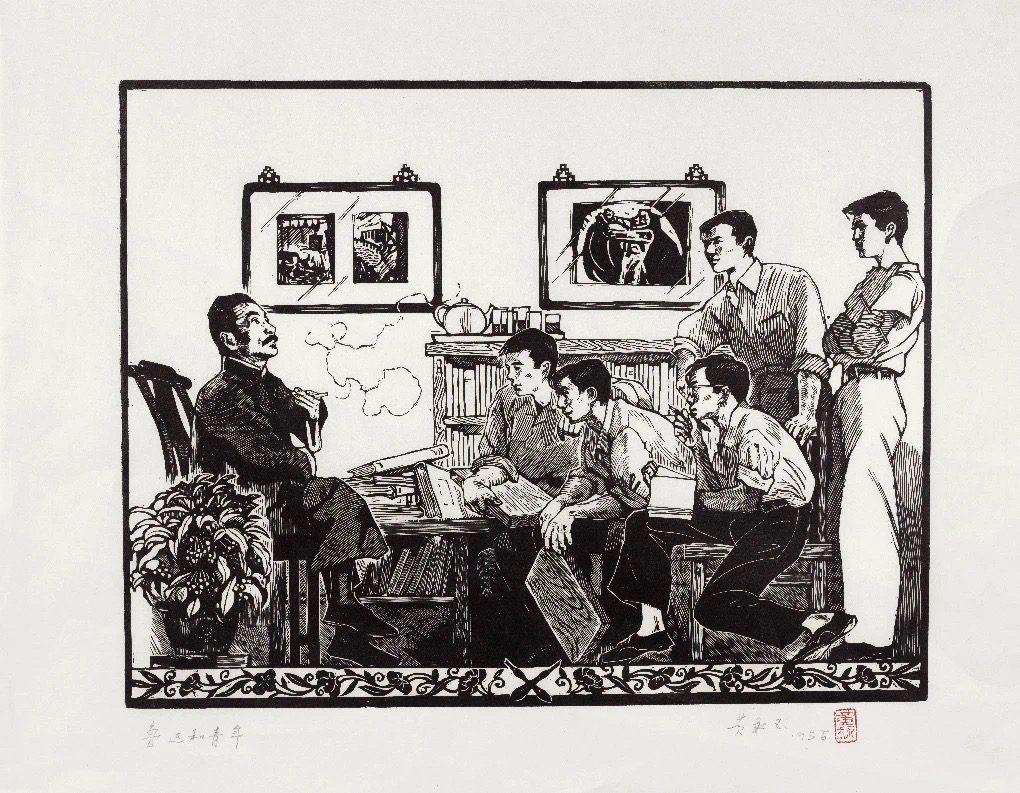 鲁迅先生和青年木刻工作者 35×45cm 1954年