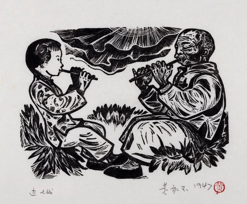 黄永玉的版画艺术,特色鲜明,独具异彩。他既不同于当时在延安时期的革命生涯中成长起来的版画家,也不同于新中国成立之后接受了系统学院美术教育的艺术家。这两个体系内的版画家,大多受到西方版画的影响,形成了以素描明暗关系为基调的黑白面貌,而黄永玉的版画则基于他过人的艺术天资与特殊的成长经历,在吸收了中国传统艺术的元素,以及现当代漫画和插画诸多的艺术形式之后,他还巧妙地借鉴了西画中的元素,纳为己用,从而形成独特的风格面貌和多元的创作格局。