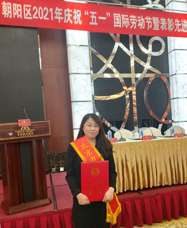 4月29日下午,北京市骨干教师、高中语文教研组组长廖瑾代表人大附中朝阳学校108名语文教师,接过了“北京市工人先锋号”荣誉称号奖牌和证书。人大附中朝阳学校语文教育教学团队在2021年北京市总工会、北京市人社局联合开展的 “首都劳动奖状、奖章和北京市工人先锋号”的评选中,代表朝阳区教育系统被评为“北京市工人先锋号”。
