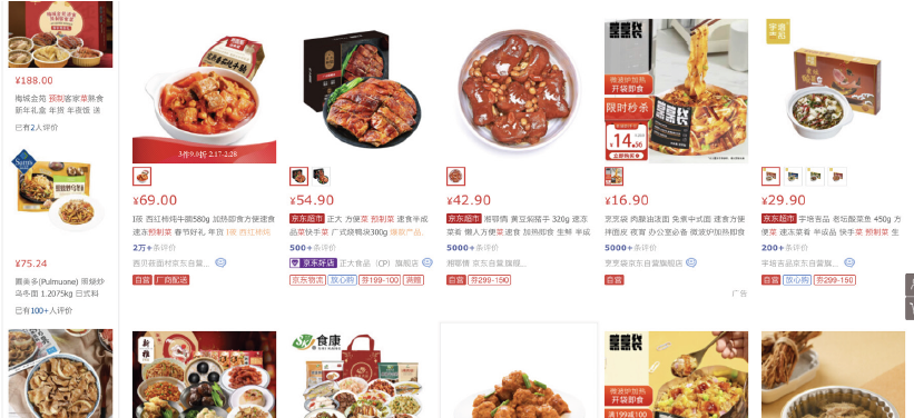 ▲某电商平台上出售的预制菜菜品。图/于海军