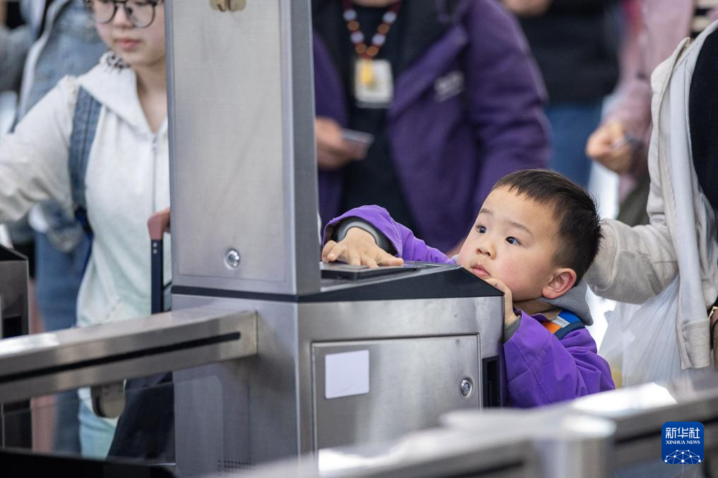 4月3日,旅客在铁路湖州站检票。