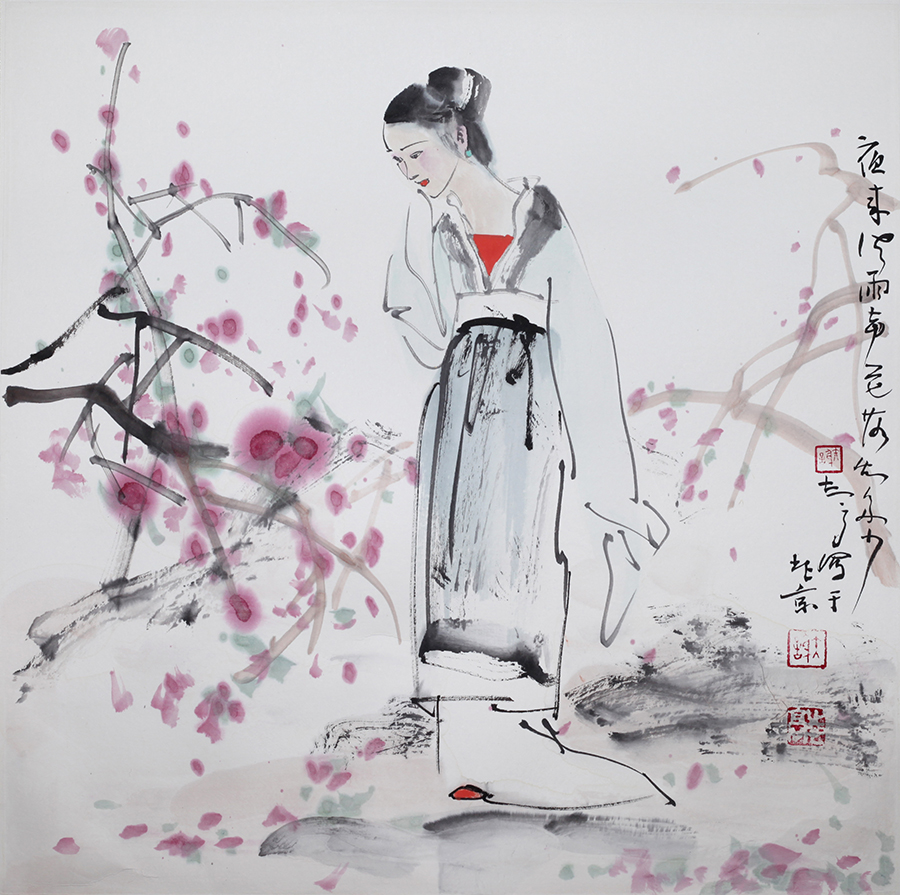 从踏进中央美院的大门开始,掀开了人生新的一页,一切都是陌生的、新鲜的、兴奋的,仿佛一切都要重新来过。两年的研究生学习,有幸聆听了中国美术界最具权威的老先生的教诲。当时集体指导的导师有吴作人院长、叶浅予系主任、李可染、蒋兆和、李苦禅、刘凌沧等,学校还请了何海霞、启功(讲授古典文学)上课,老师们在讲课的同时还经常示范,学校也办了许多讲座,开阔了视野。请了校外的许麟庐、刘继卣、石鲁、黄胄、王雪涛、孙其峰等,系里还有一批老师为同学做其他工作,如李琦、黄润华、姚志华、刘勃舒、卢沉、姚有多、陶一清、曾善庆、陈谋、王定礼、李行简等等。同时,学校特意安排同学到敦煌、永乐宫学习临摹,到大江南北寻师访友;先后拜访了谢稚柳夫妇、程十发、方增先、亚明、陈大羽、方济众、康师尧、刘文西、杨之光等等,使谢志高受益匪浅。
