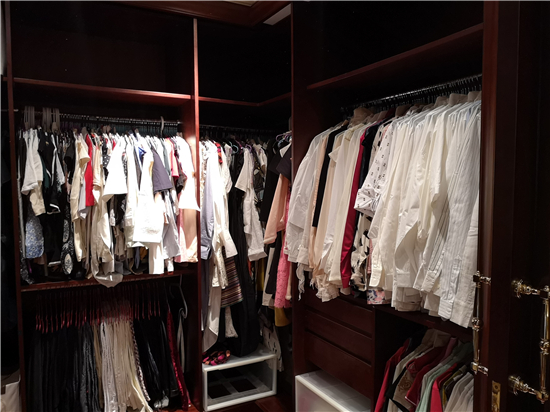 李莎家有3个衣帽间,四季的衣物混放在一起,鞋和包都堆放在衣帽间的醒目位置,“出门旅行带的衣服就是面上的几件,经常想不起自己有哪些衣服。”对着上千件衣服,李莎总是为找不到衣服犯愁。